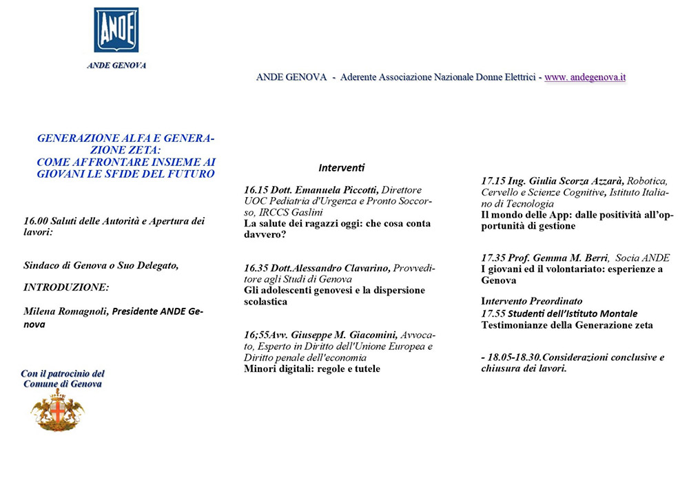 L’A.N.D.E (Ass.Nazionale Donne Elettrici) è una associazione femminile fondata nel ‘46 a Roma da Carlotta Orlando Garabelli - Figlia di Vittorio Emanuele Orlando - ispirandosi, dopo un lungo soggiorno in Nord America, alla League of Women Voters. All’ANDE, associazione è politica ed apartitica e vi aderiscono un gruppo di donne di diversa preparazione e orientamento che furono aiutate a formarsi una propria opinione, a divenire elettrici indipendenti con la mente libera da pregiudizi, consapevoli dei propri diritti e con un maggiore coinvolgimento nella vita pubblica. Ai giorni nostri l’Associazione si adopera a favorire la cultura della donna per una cittadinanza attiva che la renda protagonista nella società, nelle professioni, nel lavoro, nell’impresa. Particolare attenzione viene dedicata al problema delle pari opportunità in una realtà sociale in rapidissima trasformazione. E’ una associazione italiana ma, fin dalla sua fondazione, ha sempre avuto come riferimento l’Europa, già nello Statuto si dice “l’ANDE crede in una Europa unita, forte nei suoi rapporti internazionali e protagonista nel processo di globalizzazione mondiale e opera per la sua realizzazione e il suo consolidamento”. Ora, dopo oltre 70 anni l’Ande ha ancora quella carica vitale che la anima con una concezione della politica che si pone al di sopra delle diatribe dei partiti. Ci attendono ancora anni di inteso lavoro, impegno, arricchimento umano e culturale per quanto riusciremo a fare dando voce alle donne. Avremo sempre la donna al centro dei nostri programmi perché “progress for women, progress for all” il progresso delle donne è progresso per tutti.